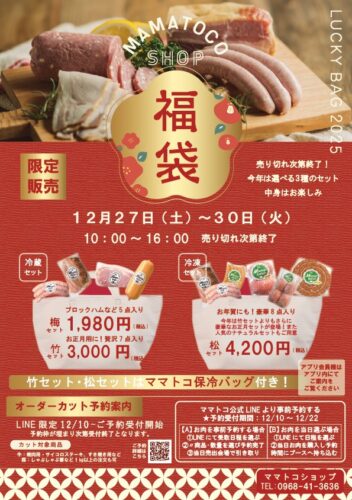 また、年末の集まりやお正月にも嬉しい!ブロックハムやウインナーなどがセットになった、お得な福袋も販売されます。