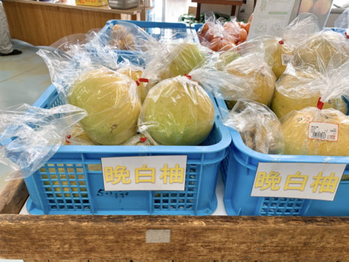 上天草物産館に入ります。地元の野菜や柑橘類がいっぱい並んでいるその奥に、