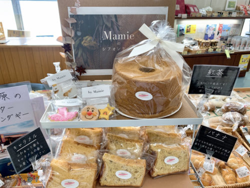 ここに「Mamieのシフォンケーキ」という地元のケーキ工房が手がけるシフォンケーキが並んでいます。