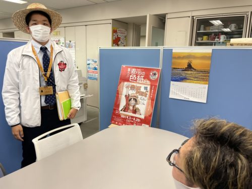 熊本県のマンガ・アニメにかける意気込みを目の当たりにしました!(ルフィのトレードマーク麦わら帽子をかぶってお仕事)