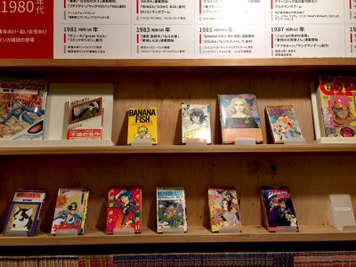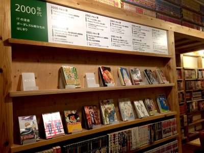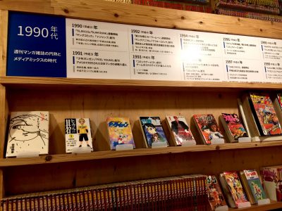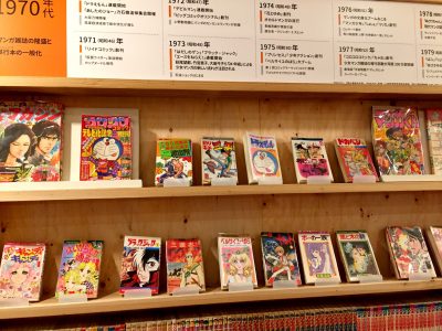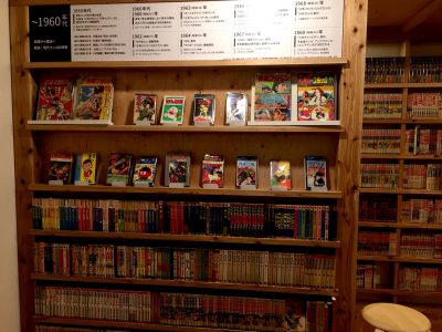 漫画が年代ごとに展示され読めるようになっています。
