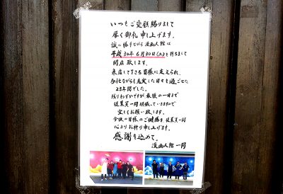 創業23年間の「カフェ レストラン 漫画人館」が6月30日を持って閉店。