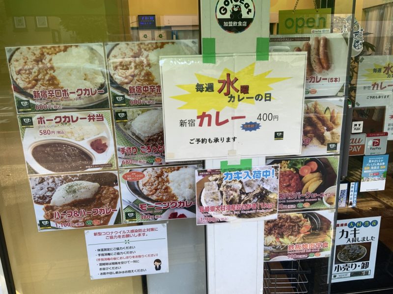 緑色で、店頭にはたくさんカレーの写真が貼られているのですぐ分かります!