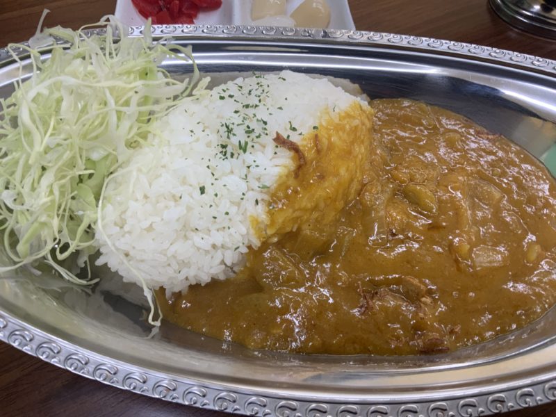 カレーは自家製の牛スジカレーか、新宿で生まれで日本カレーの走りという「新宿ポークカレー」の2種類。