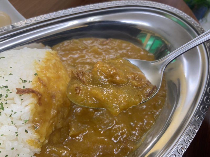 ルーは辛口でもそんなに辛い!!!というわけではなく、程よい辛味と素材の旨味が良い感じに引き立っています。