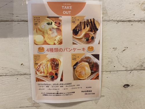 熊本市中央区の並木坂にある【Manly Kumamoto(マンリークマモト)】で珍しいパンケーキのテイクアウトをやっていてしかもテイクアウト限定でパンケーキバーガーというものを提供しているらしいので早速取材に行ってきました!