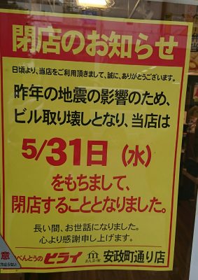 熊本の中心地からヒライが消える・・・
