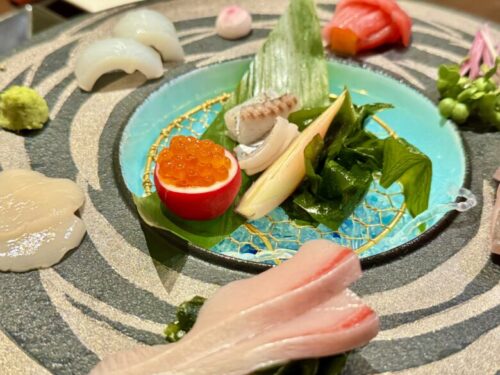 お皿は主役であるお刺身を際立たせながらも、配置の妙を演出してビジュアル的に目を楽しませてくれます。