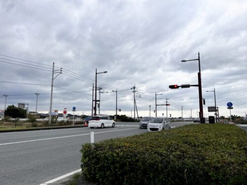 場所は、熊本城フルマラソンのコースにもなっている熊本港線(県道51号線)をアクアドーム方面へ進み、熊本港目前のこちらの交差点を左折します。