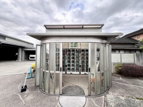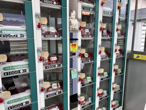 こちらが、T.K.EVOLUTION FARMの自動販売機によるトマト直売所です。