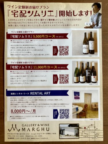 宅配ソムリエという面白いサービスまでやられている「GALLERY & WINE MARGHU KUMAMOTO(ギャラリーアンドワイン マーグ クマモト)」はこれからも大注目です!