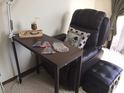 ゆっくりとコーヒーを飲みながら、ネイリスト講師も務める上野さんの丁寧な施術を受けることができます♪