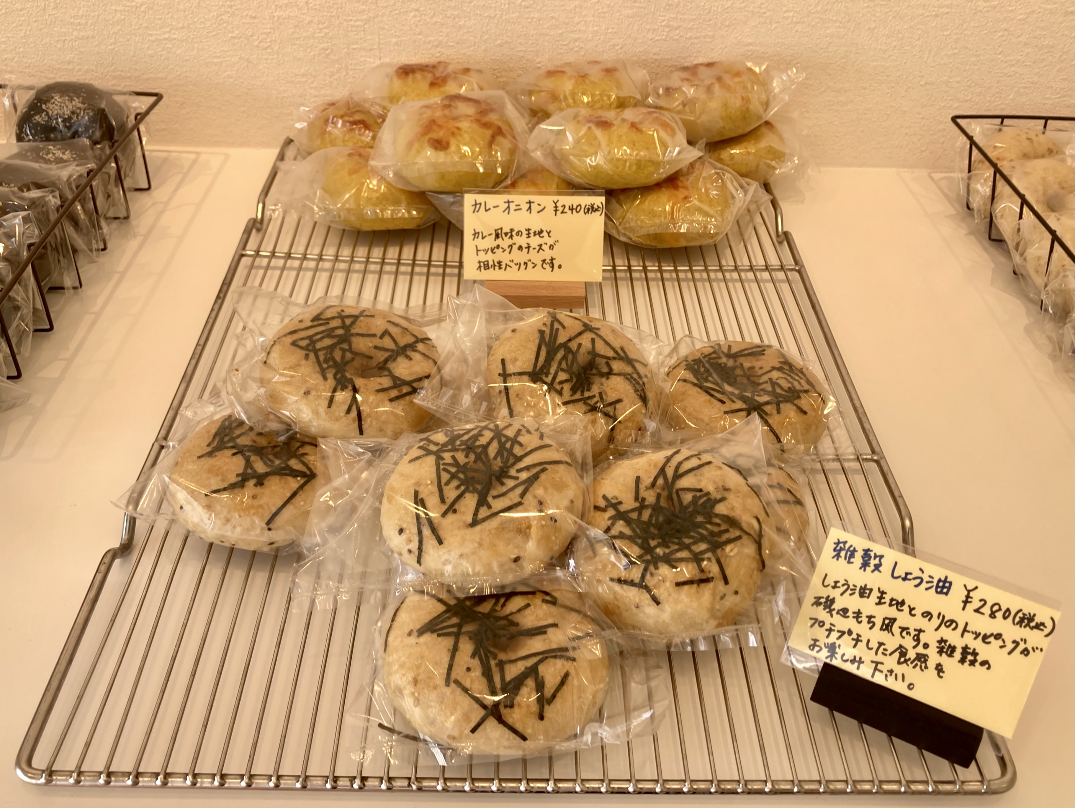 絶対美味しいと分かるカレー味など食事系のベーグルが多数。