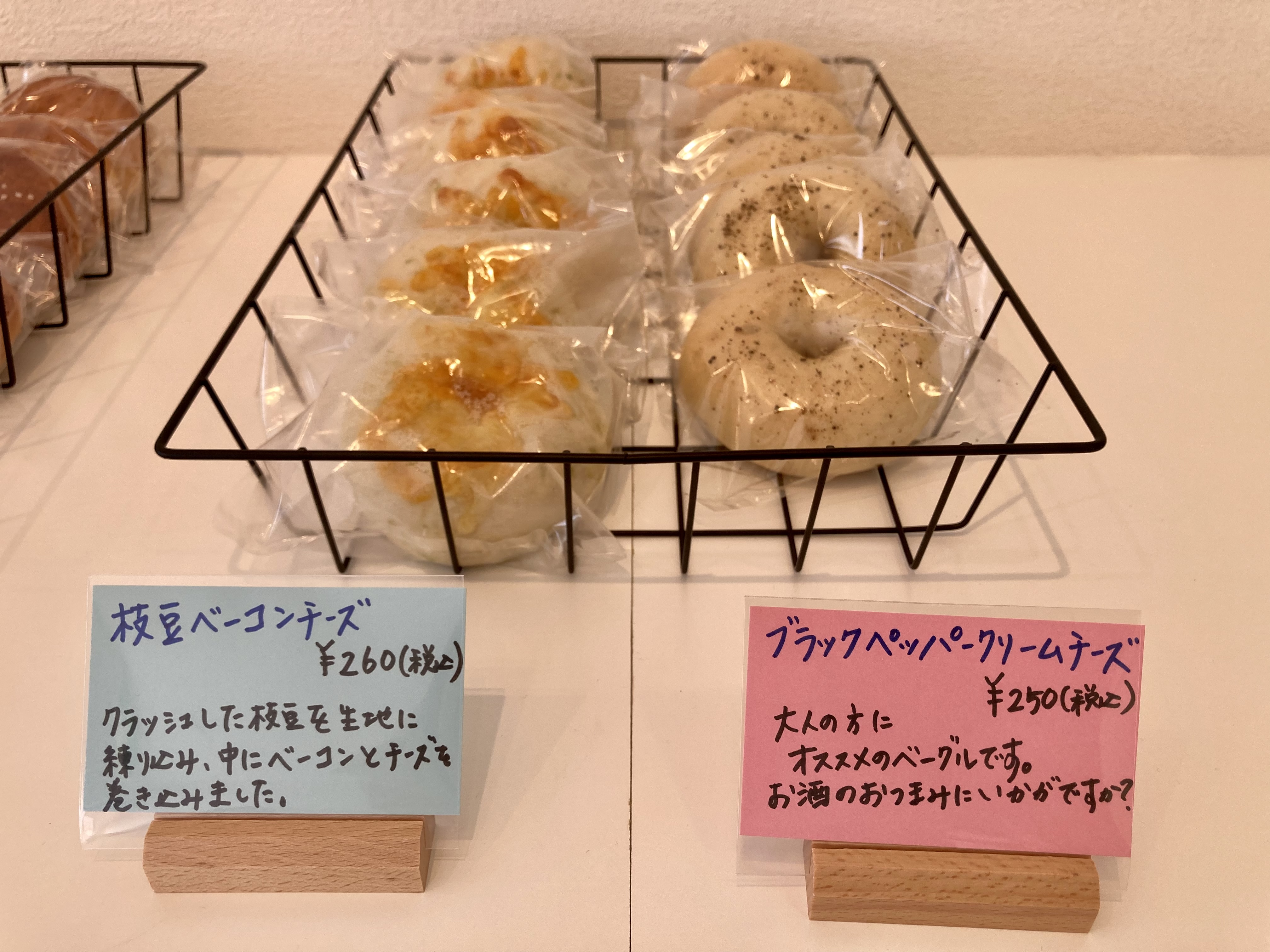 これは大人のベーグル。このPOPを見てまんまと買ってしまいました。絶対美味しい。ワインと合わせたい。