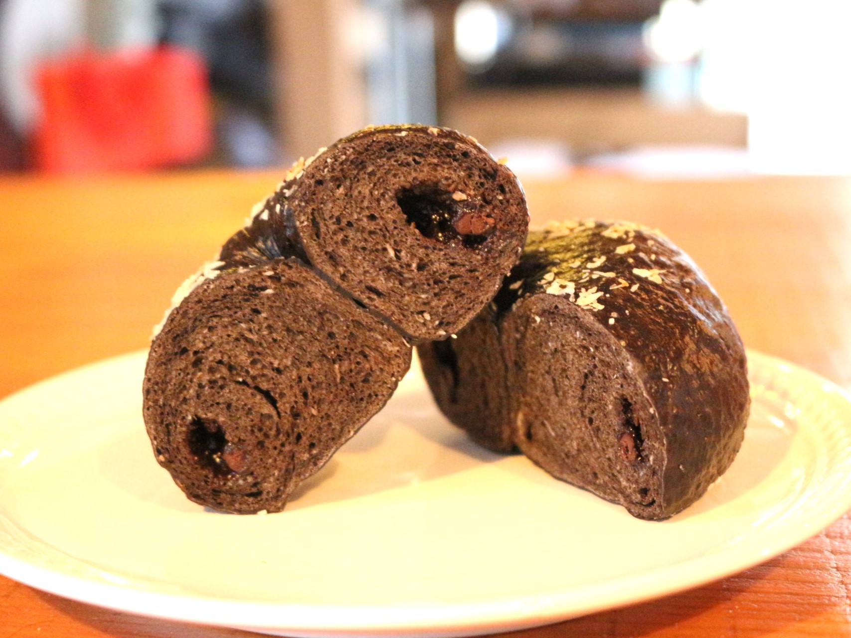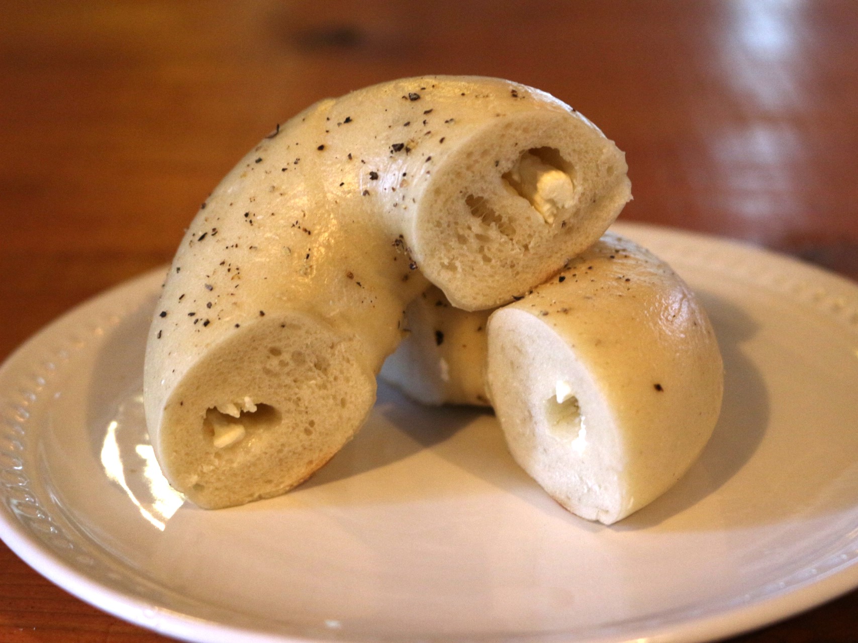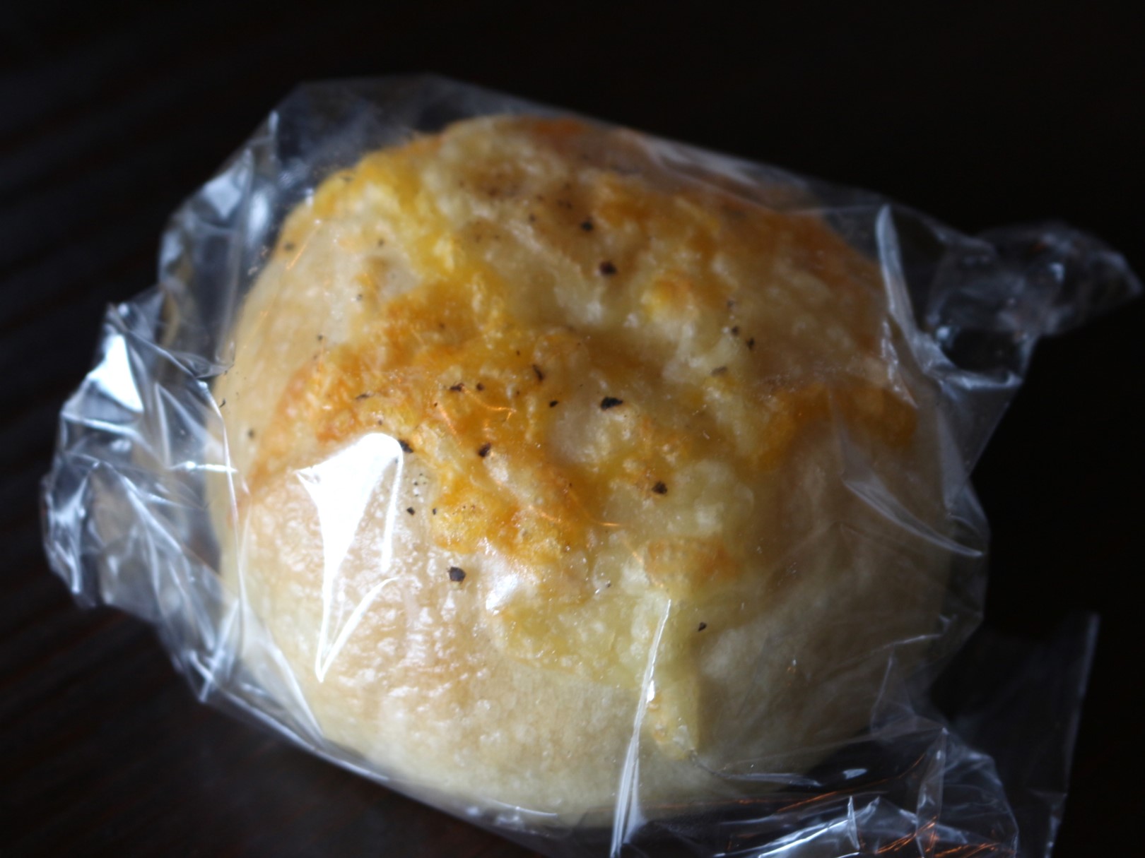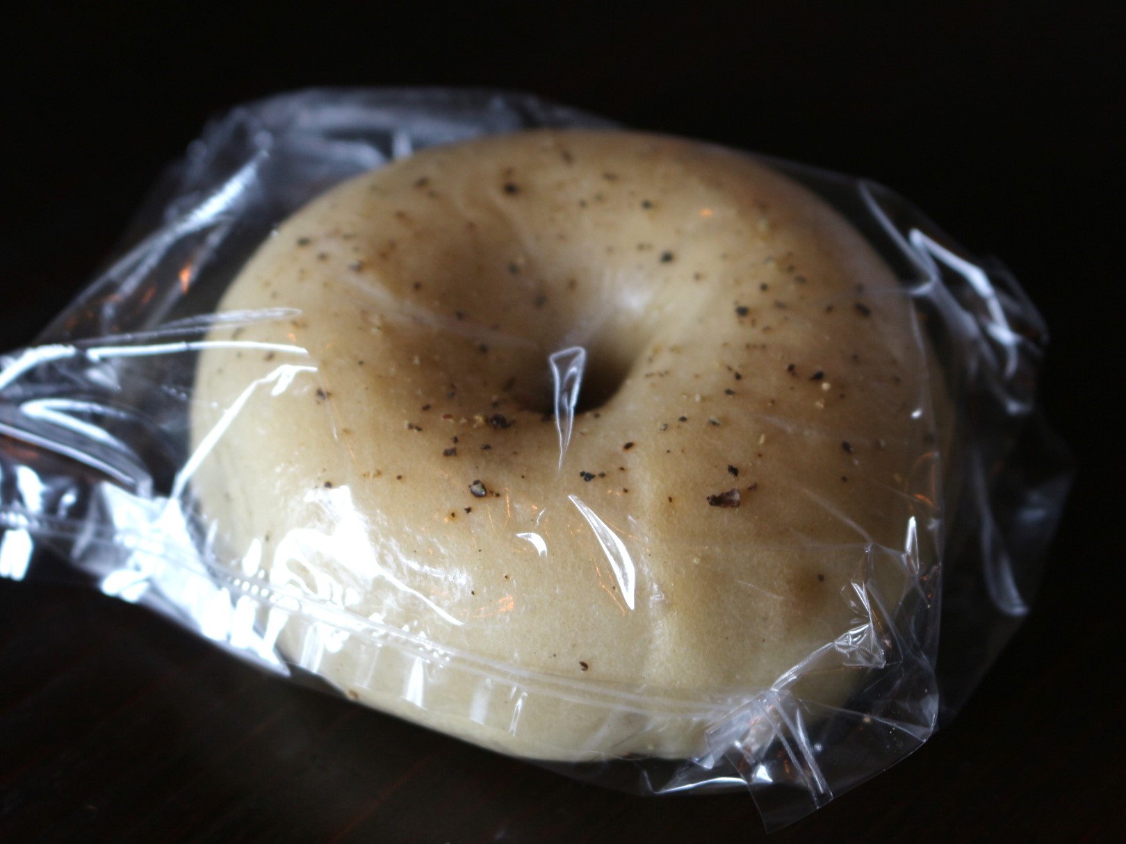 これはベーグルの中にクリームチーズ、表面にブラックペッパーが散りばめられた一品。