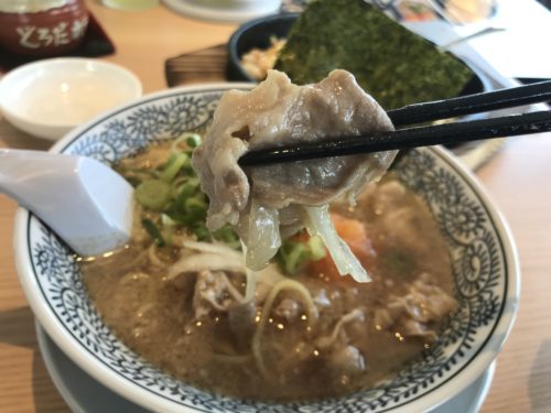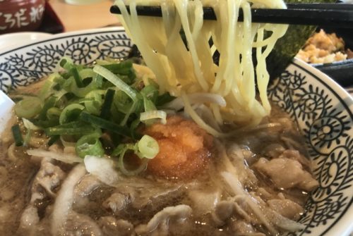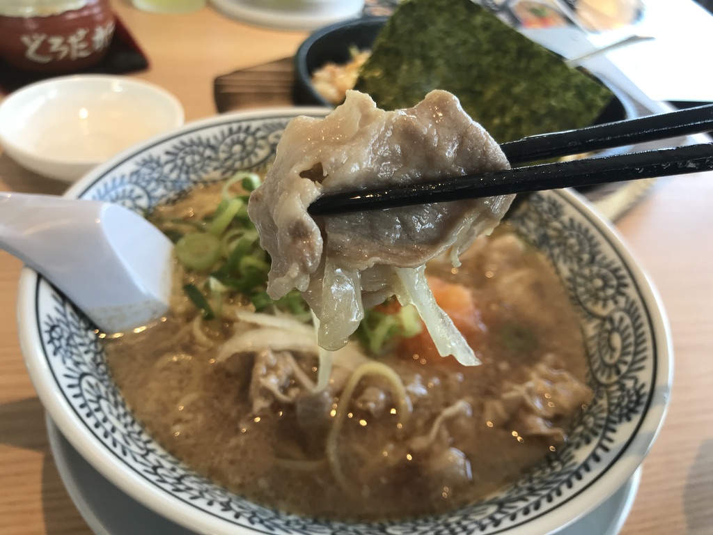 熟成醤油と豚肉の脂が相まって、コクとトロみを帯びた、牛丼ラーメンのような味と言ったら伝わりますかねぇ?