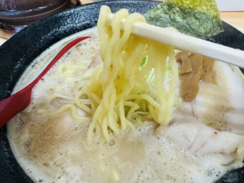 麺はこのような感じ。もちもちとした食感。替え玉はありませんので、大盛がお薦めです。