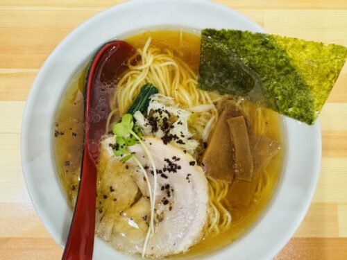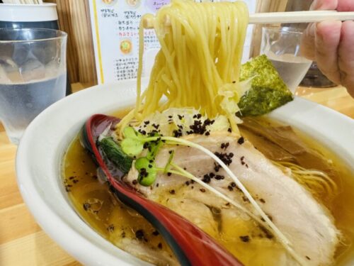 麺は細め。コシもあり、スープもまとめてどんぶりがあっという間に空になってしまう美味しさです。鶏豚骨と対極のようなこのお味…どちらにしようかとても迷います。