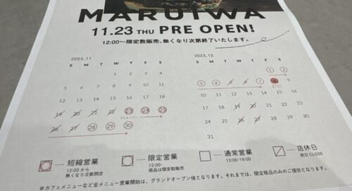 プレオープン期間は12月7日まで。営業は画像のカレンダーの通りとなっております。