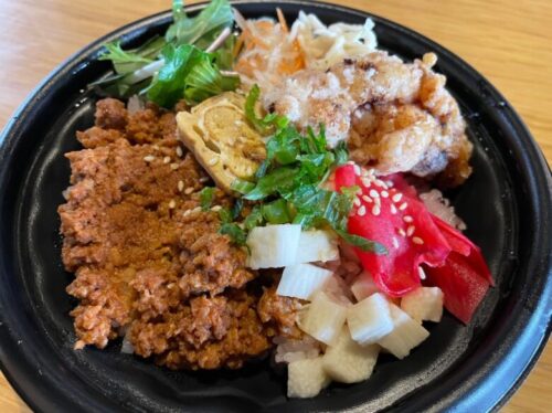 山芋や卵焼き、唐揚げまで入ったビビンバ弁当、彩りも美しくて美味しいお弁当でした!