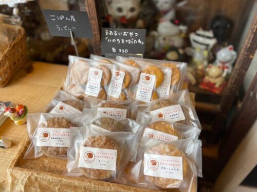 ごぱん屋うっでぃーさんの体に優しいおやつや、ご近所の「すずめと穂」のパン(現在は臨時休業中)も置かれています。