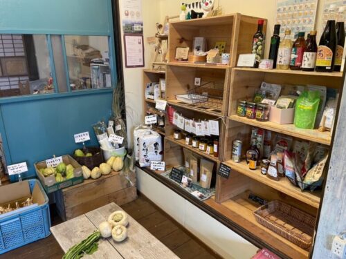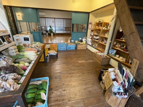 店内は、古民家を改装したスペースで、たくさんの野菜や調味料などが売られていますよ。