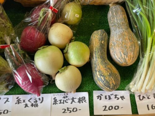 紅くるり大根や紅芯大根など、珍しい野菜も多く、お手頃でわかりやすい価格で購入できるのが魅力的ですね!