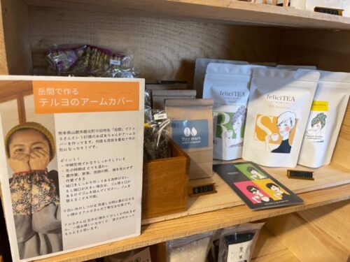 菊池で、農薬や化学肥料を使わず、安心して食べられる野菜を作られている、うぶとも農園や、どんたけし農園の野菜や平飼い卵、そしてご実家で育てられているという立派な原木椎茸などが並んでいて、どれも生産者さんたちが想いを込めて作られている、貴重なものばかりです。