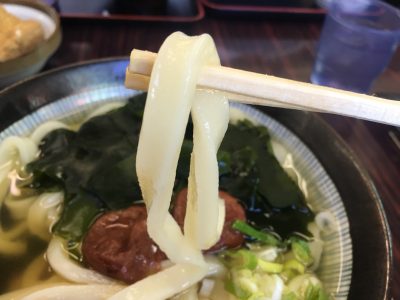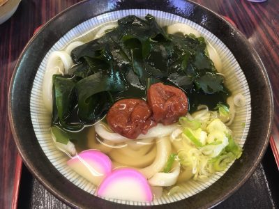 うどんはウメ(ワカメ付)のトッピングをチョイス。