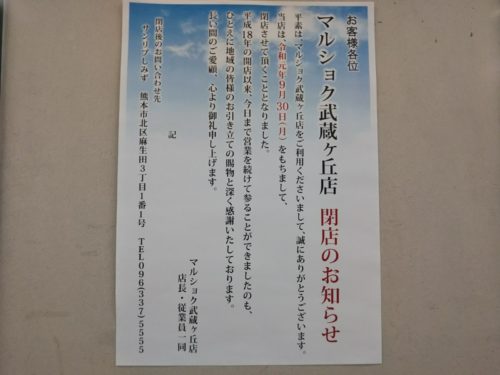マルショク武蔵ヶ丘店が9月30日で閉店
