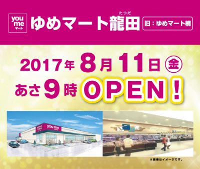 ゆめマート楠は新たにゆめマート龍田に名称を変更し、8月11日に再オープン!!!