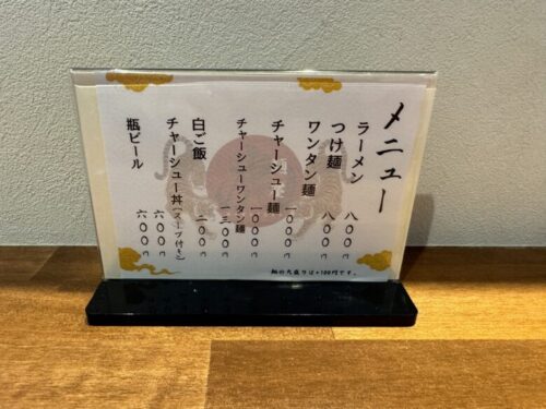 こちらがメニューです。ラーメンとつけ麺をオーダーしました。