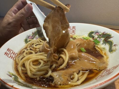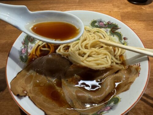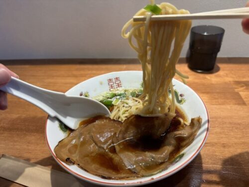 西区花園にオープンした醤油ラーメン!記者は醤油味の染み込む太麺にすっかりと魅せられてしまいました。