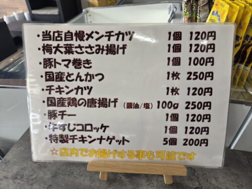 メンチカツを始めとした様々な揚げ物たちが名を連ねてます。(価格は、取材時よりも値上げされている場合がございます。)