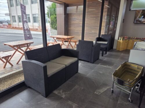手前は惣菜が出来るまでの待機として利用できるソファー。