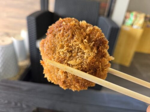 褐色の衣がサクッと音を立てたかと思えば、しっかりと練られたミンチからジュワっと溢れる肉汁!