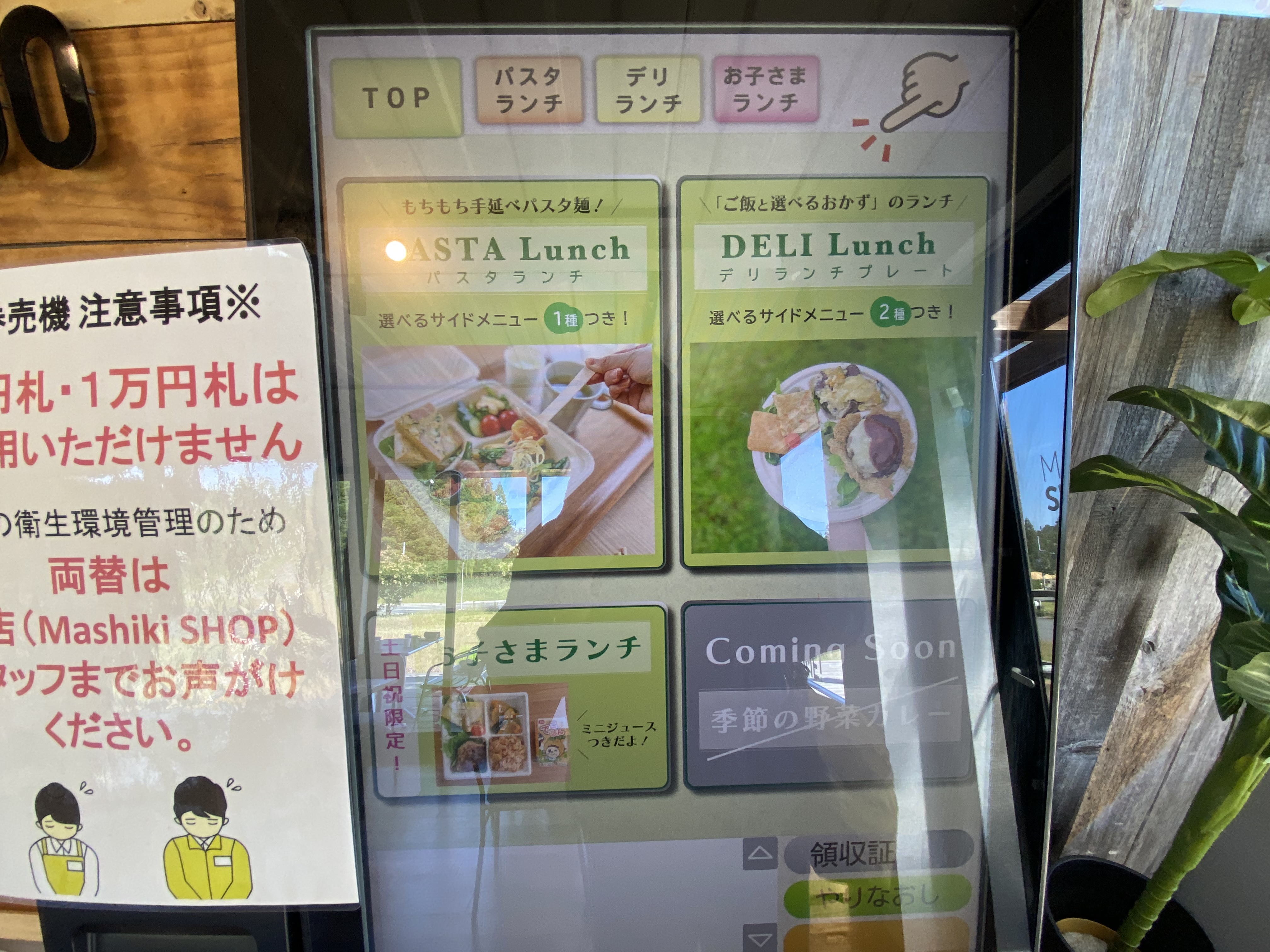 光が反射して見えにくいですが、パスタランチかデリランチかを選びます。