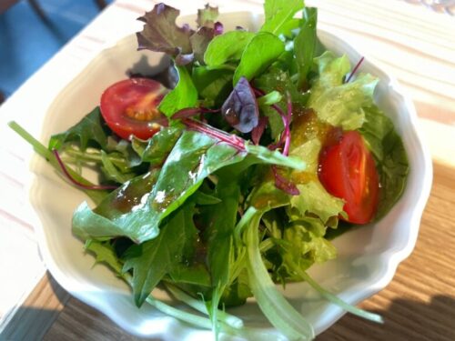 地元益城町のみっちゃん工房のベビーリーフと、阿蘇蔵農園の力強い味わいの野菜を使ったサラダは、本当にフレッシュで美味!