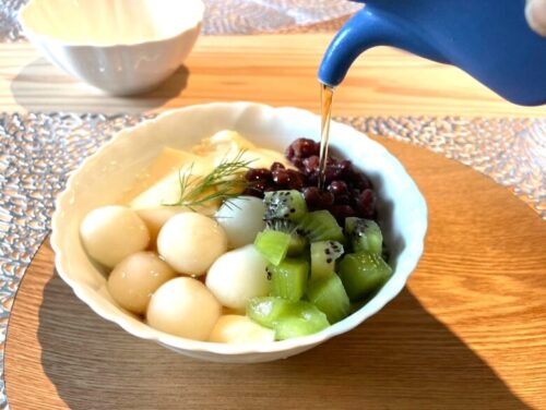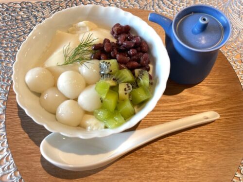 白玉団子も6個も入っていて、甘さ控えめの豆乳プリンは、食べても罪悪感ゼロのヘルシースイーツ!