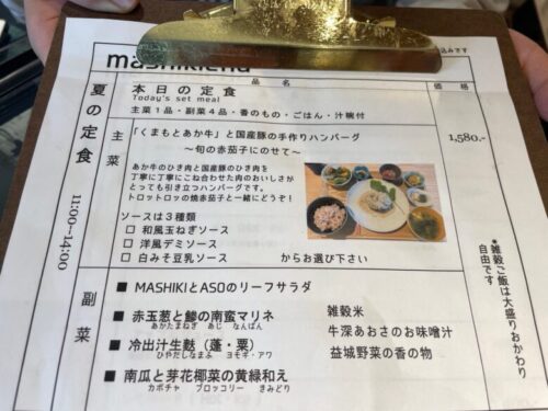 【益城町】白みそで味わう贅沢なあか牛ハンバーグ&ヘルシースイーツが楽しめる「mashikiena(マシキーナ)」
