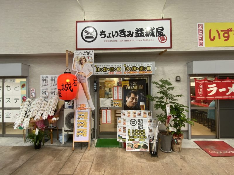 健軍商店街ピアクレスを歩いていると、いずもラーメンの隣に新しく居酒屋ができていました!名前は「ちょい呑み益城屋」。早速、お邪魔してみることに。
