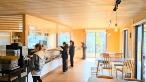 木のぬくもりと光に包まれる店内