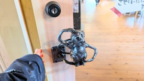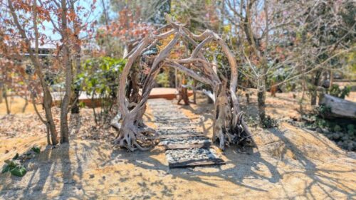 また、敷地内にある大きな木のオブジェは、水害で流れてきた流木から生まれたもの。