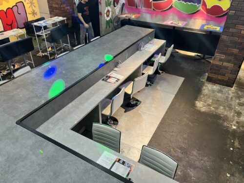 お店の中は意外と広く、テーブル席やステージに面したカウンター席もあります。