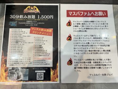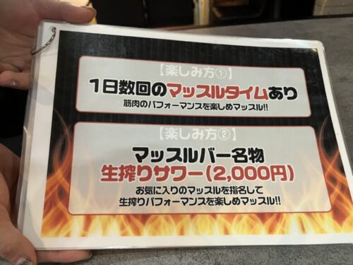 ちなみにどんなお客さんが多いか聞いてみたところ、やはり女性が多いそう。マッスルバーのコンセプトが【女性が安心して楽しめるエンターテインメント】とのこと。