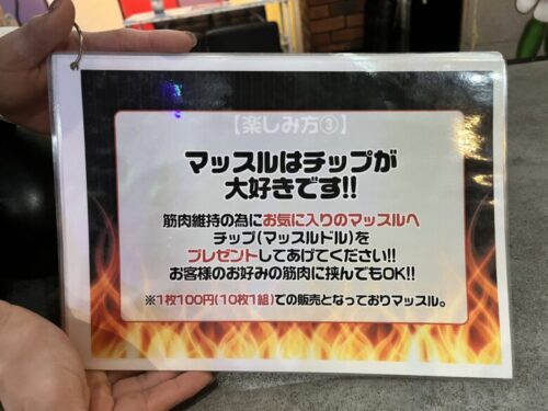 おもてなしの際のマッスルドル(チップ)は1枚100円。