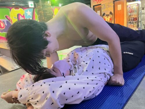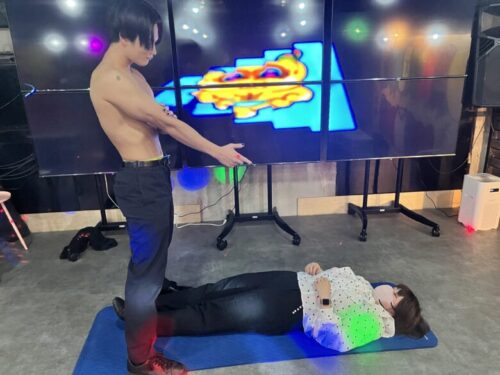 マッスルの上に乗って腹筋してもらう、マッスル腹筋も人気とのこと。