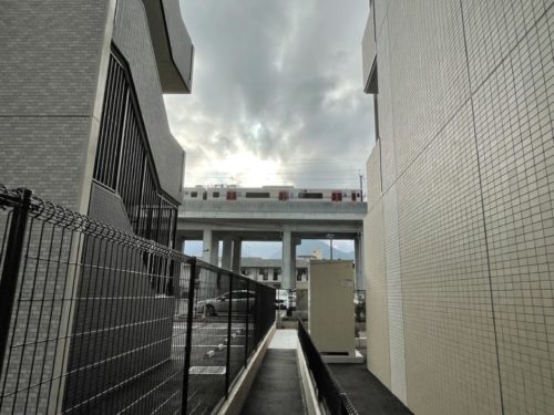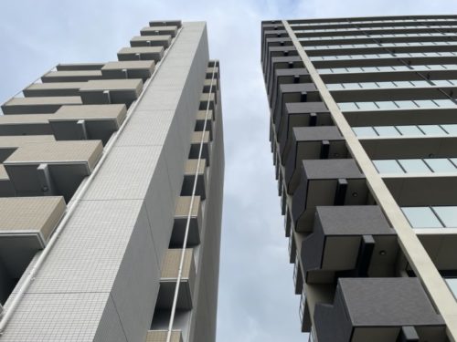 ピカピカのマンションに囲まれて、とても不思議な空間を生み出しております。