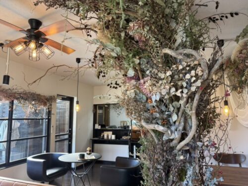 実はここが今回の大きなポイント。以前はシュッとしたモダンな内装だったのですが今回のリニューアルを機に大きく方向転換をし木が生えました。