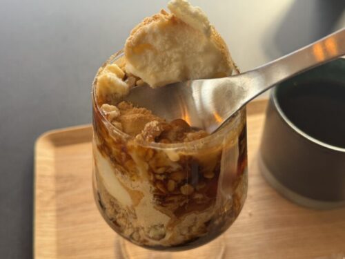 今までにおいてこんなに黒糖の量がたくさんのパフェって初めて巡り合いました。ありがてえ…!